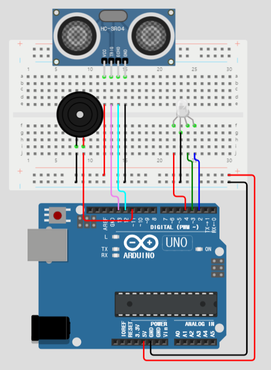 요즘 자동차에는 대부분 물체를 감지하는 센서가 달려있습니다. 저는 작년 12월에 차가 오래되어 새 차를 구매하였는데 기존 차에는 후방감지 센서가 없었습니다. 그래서 뒤쪽 범퍼를 보면 크고 작은 흠집이 많이 있었습니다. 이번에 새로 구매한 차에는 뒤쪽은 물론 앞쪽에도 센서가 있어 주차하기가 아주 편합니다. 또 고속도로를 달릴 때 자동주행 기능을 켜면 앞차가 세팅한 거리 이내로 들어오면 알아서 속도도 줄여줍니다. 이렇듯 요즘 생산되는 차들은 운전을 쉽게 할 수 있게 하는 많은 기능을 가지고 있습니다. 오늘은 거리에 따라 알람음의 속도와 LED 색이 변하는 후방감지 시스템을 만들어 보겠습니다.